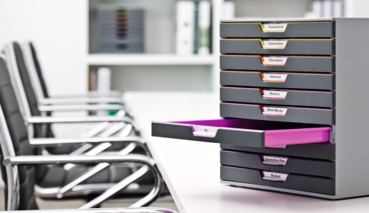 Az elegáns antracit színű tárolók minden irodai környezetben megállják a helyüket, ráadásul segítségükkel az otthoni irodánkat is stílusosan tudjuk kialakítani. Ha Önnek is fontos a kifinomult munkakörnyezet, tekintse meg VARICOLOR® irodai rendszerezőink széles választékát.