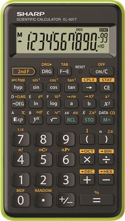 Számológép, tudományos, 146 funkció, SHARP "EL-501TBGR", fekete-zöld
