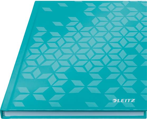 Beíró, A5, vonalas, 80 lap, keményfedeles, LEITZ "Wow", jégkék