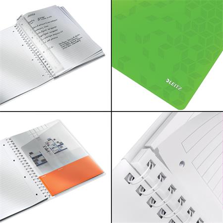 KezdőlapIrodaszerekIrodai papíráruFüzetek, gyűrűskönyvbetétekSpirálfüzet, A4, vonalas, 80 lap, LEITZ "Wow", zöld