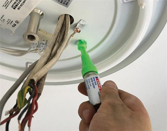 Folyékony kréta spray szabadalmaztatott pumpás mechanizmussal nem permanens jelölésre nehezen hozzáférhető helyeken, szinte minden anyagon.