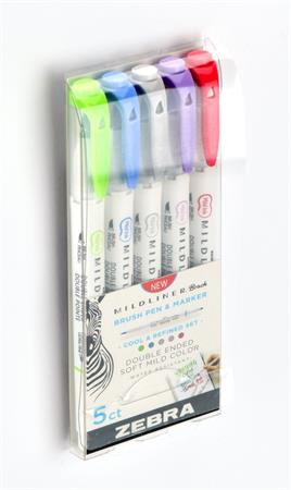 Ecsetirón készlet, kétvégű ZEBRA "Mildliner Cool & Refined", 5 szín