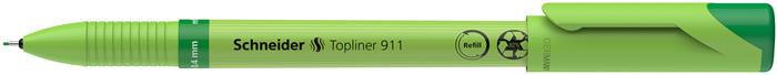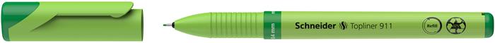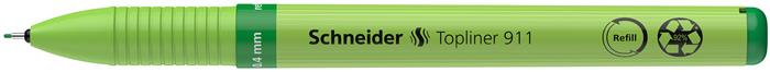 Tűfilc, 0,4 mm, cserélhető betétes, újrahasznosított tolltest, SCHNEIDER "Topliner 911", zöld