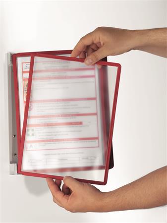 Bemutatótábla tartó, fali, 5 db bemutatótáblával, DURABLE "VARIO® WALL 5", piros