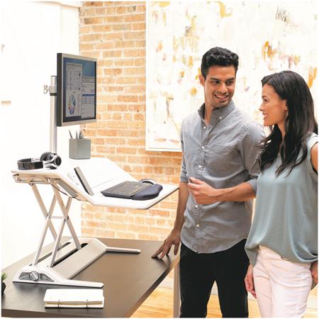 Az ülő/álló munkaállomás megoldást kínál az üléssel eltöltött idő csökkentésére, elősegíti a munka közbeni mozgást.